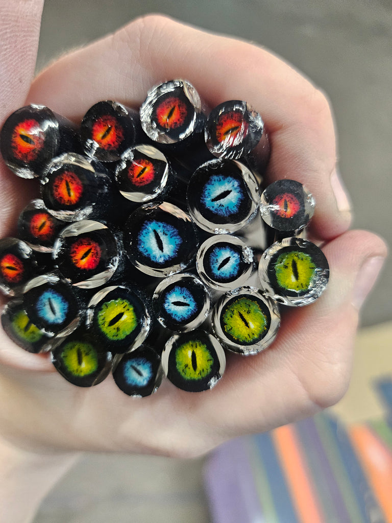 - **Vibrant Color Palette:** Our murrini canes are available in a stunning array of colors, allowing you to create mesmerizing patterns and unique pieces that stand out. Each cane is designed to retain its brilliance, ensuring your creations radiate beauty.