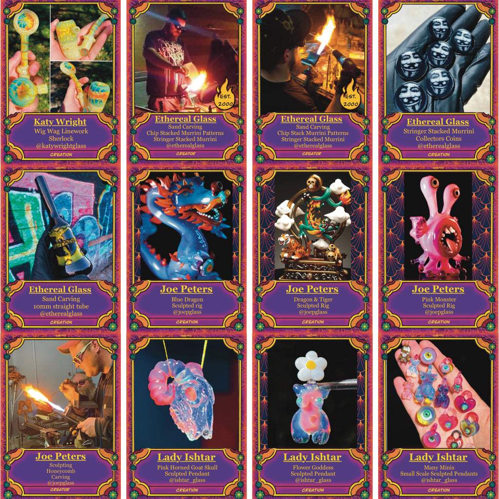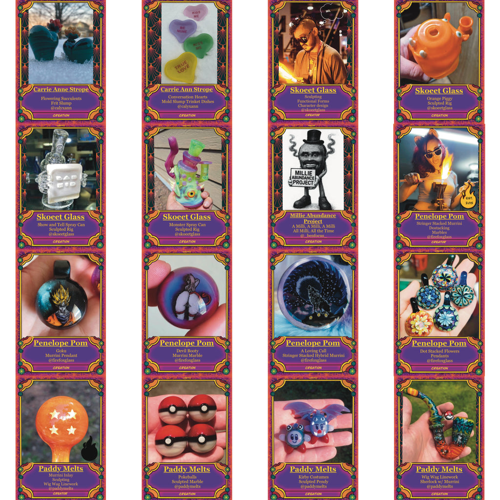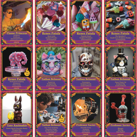 Discover the vibrant world of BoroCraft, a 100-card trading card set celebrating the stunning artistry of 25 talented glass artists. Each card showcases breathtaking, handmade glass art pieces, capturing the skill, creativity, and passion of these artisans. Perfect for collectors and art enthusiasts alike, BoroCraft offers a unique glimpse into the world of glass craftsmanship.Boost your collection with booster packs containing 8 cards each, including a special sticker. Every booster pack guarantees 2 holo cards, featuring dazzling, rare designs that will elevate your collection. Whether you're a seasoned collector or new to the world of art cards, BoroCraft brings the beauty of glass art to life in a collectible format.